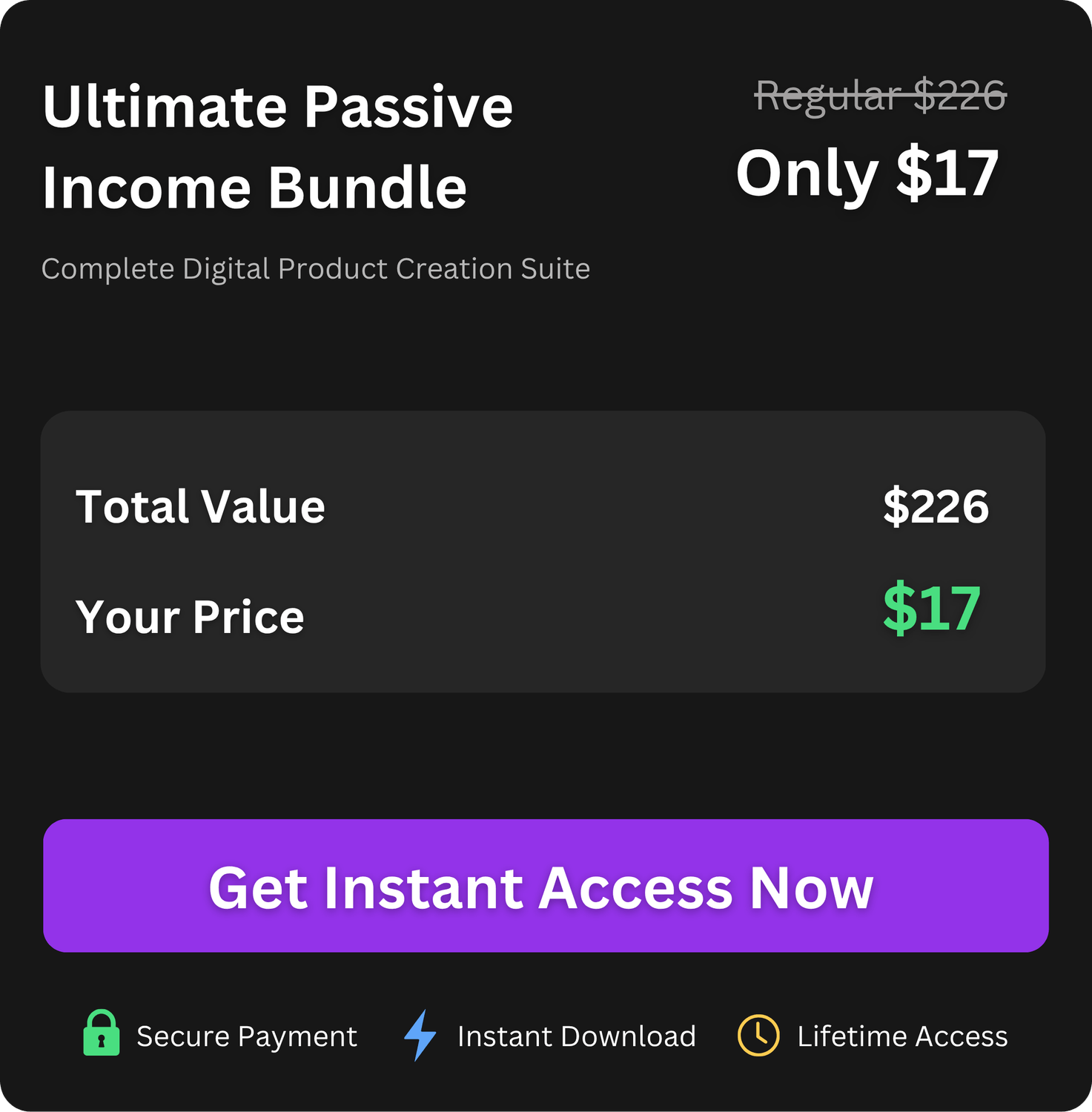 Get instant access to all resources and start building your passive income streams today. No waiting, no delays.