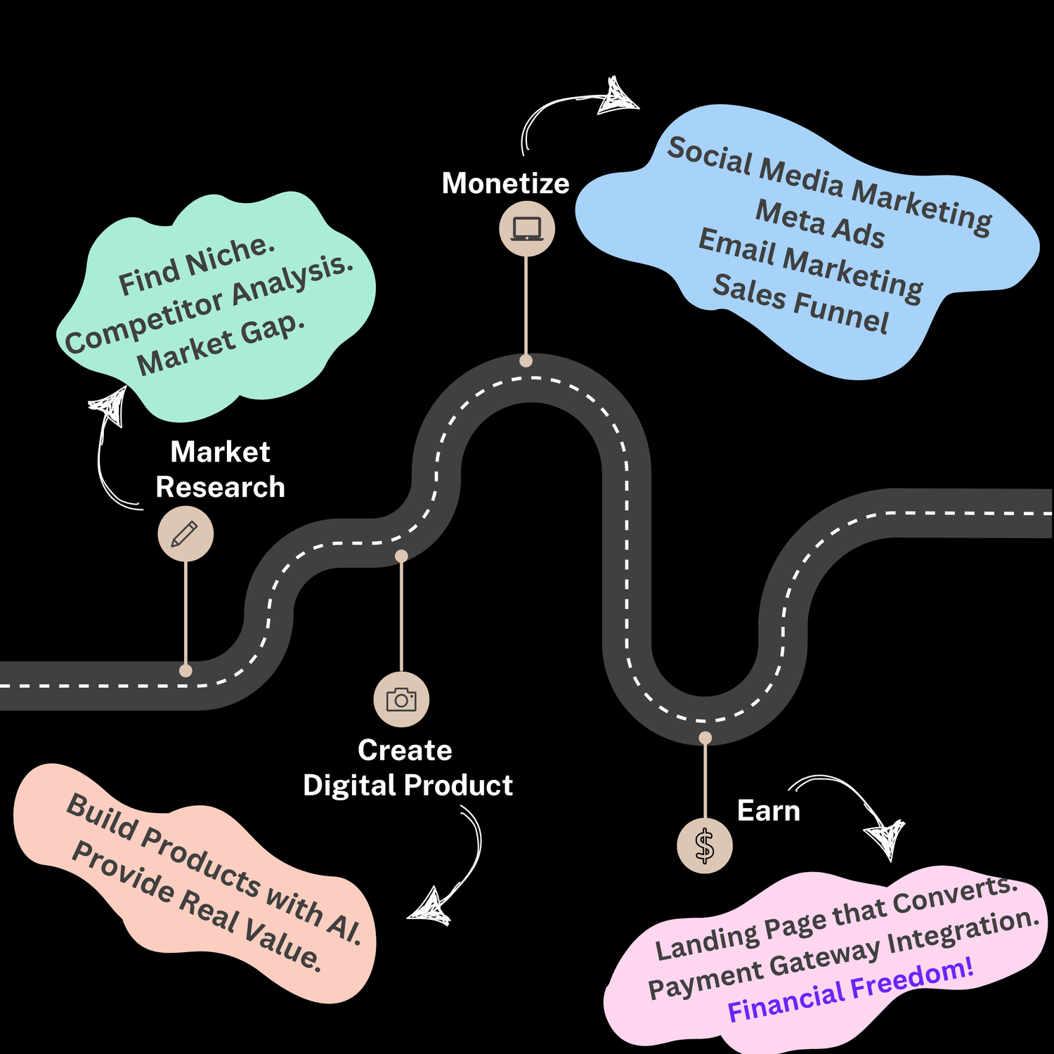 Get everything you need to build a profitable digital product business - from market research to social media marketing, all while staying completely anonymous.